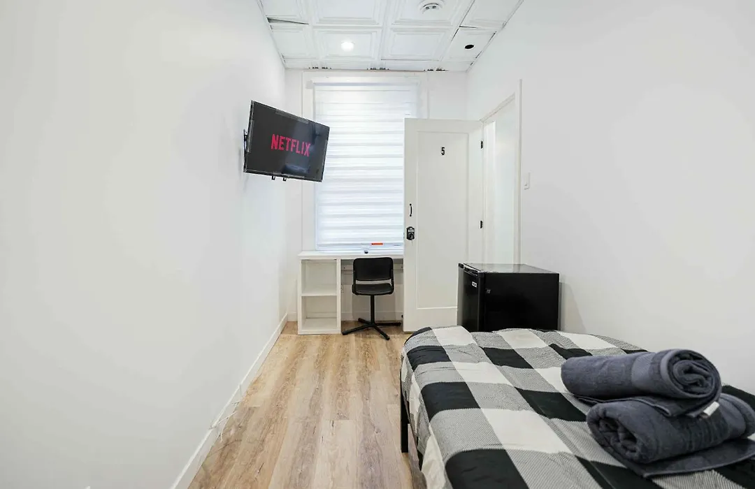 Room In Montreal provides guests with a fully equipped kitchen, as well as such modern comforts as climate control.